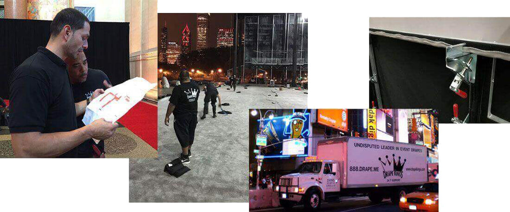 No other drape company can claim that it’s able to deliver, set-up, or strike drape in the middle of the day or night. Only Drape Kings will, and only Drape Kings can!