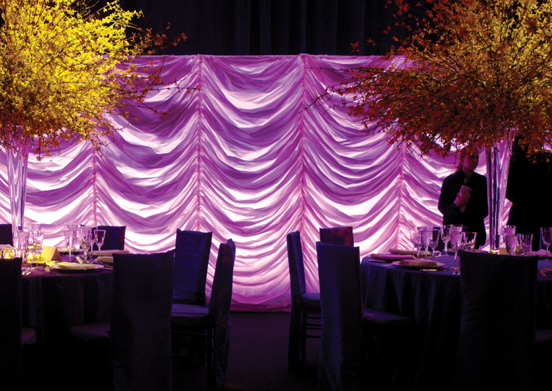 Add a touch of old Hollywood glamour to any occasion with an Austrian. These drapes are constructed with multiple vertical lines distributed evenly across the length of the fabric, which is most often a thin satin or sheer that bunches up well. The vertical lines combined with the horizontal fullness create a rich elegant look.