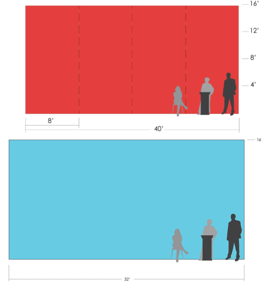 - All AV Drop walls are exact sizes. Dimensions cannot change onsite.