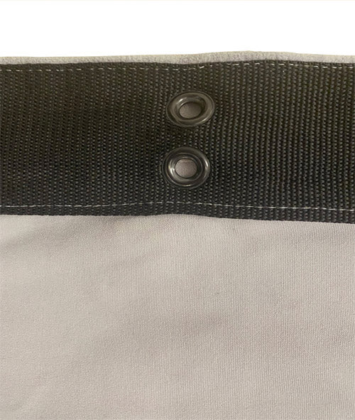 The black with red “center mark” heavy duty strap is used to designate the center when there is an odd number of grommets. All other straps are black