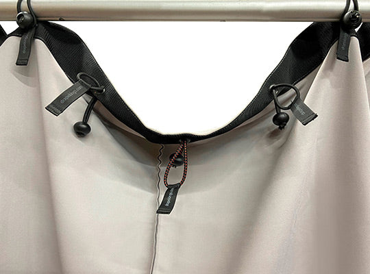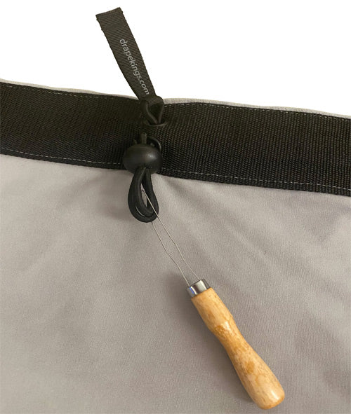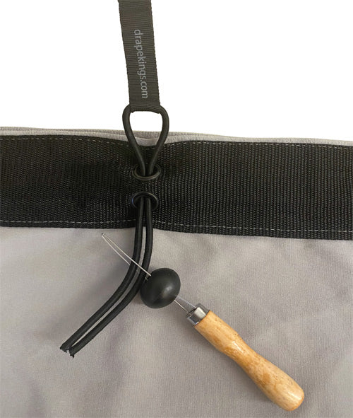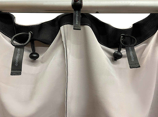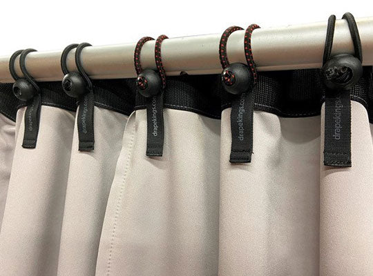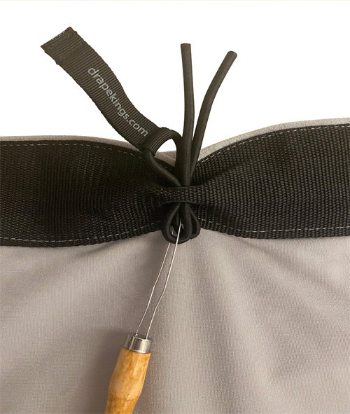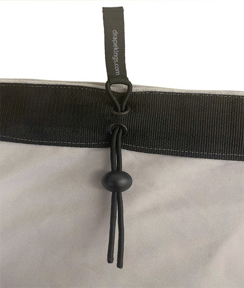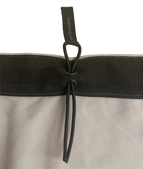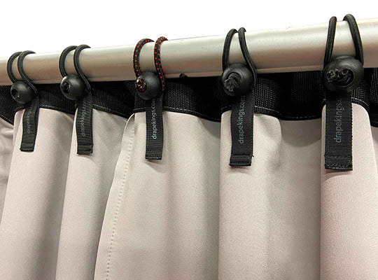 Drape Kings Quick Bungees tie-on replacements allow for amazingly fast on site install and removal of grommeted Drapes and Screens. Frayed, knotted, and tie lines are a thing of the past.