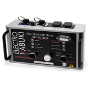 Simply attach the EK2 modules to truss or a horizontal, spacing them from one to four feet apart. Link them together with simple color-coded Electro Kabuki cabling and connect the firing box to one end of the circuit.