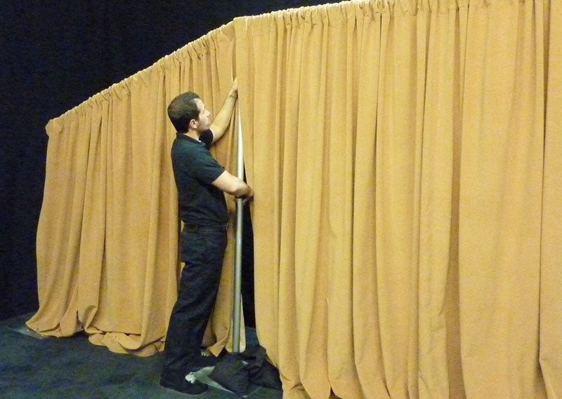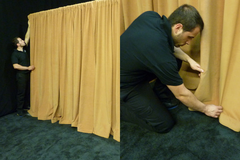 The final step is to go along the drape walls to adjust and puddle any and all extra drape as required.