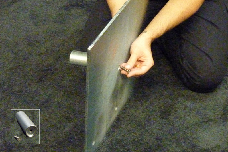 Next, select a screw hole in the base for the slip fit pin. The pin diameter and height is determined by the upright size being used. For sizing details, please refer to the Base Assembly page.